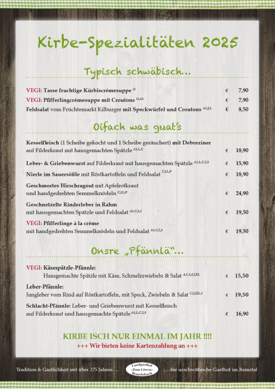 Unsere neue Karte ab Dienstag 30. September 2025, abends steht ganz im Zeichen der Beutelsbacher Kirbe