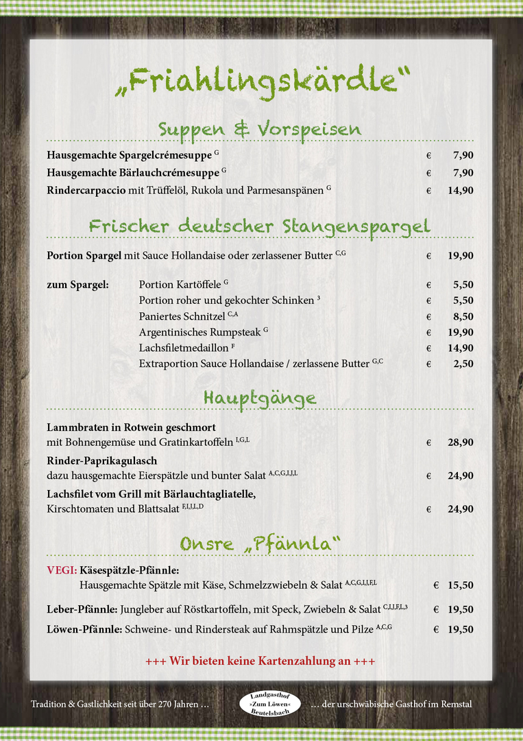 Alle Gerichte gibt es auch zum Abholen bei uns im Löwen.